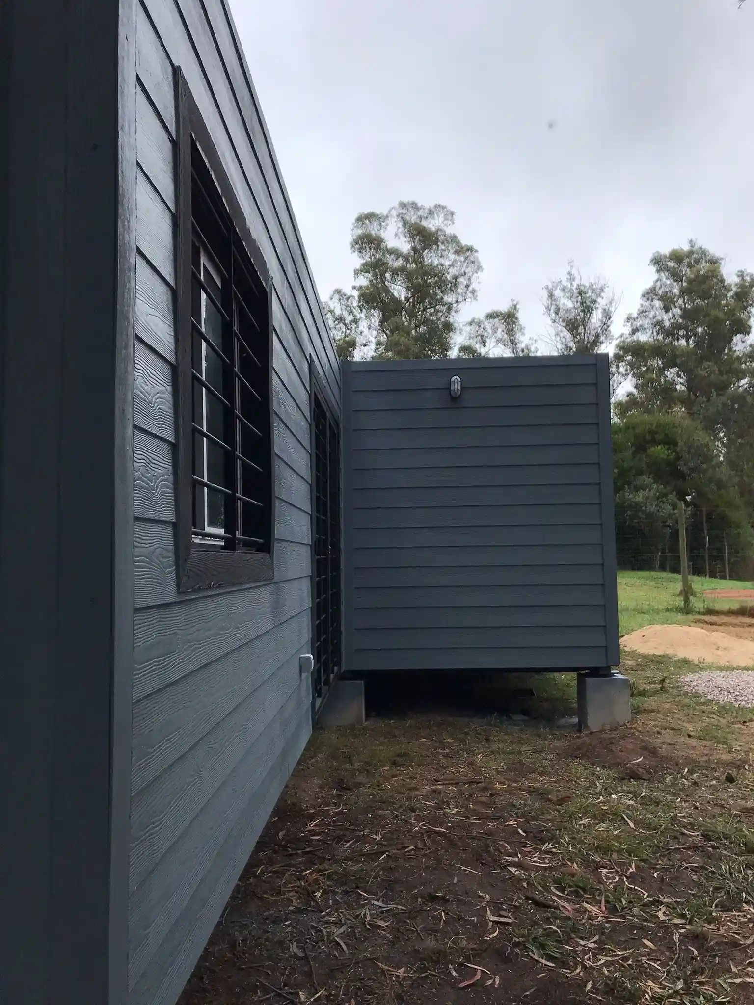Detalle del revestimiento exterior y encuentro entre módulos de la casa contenedor.