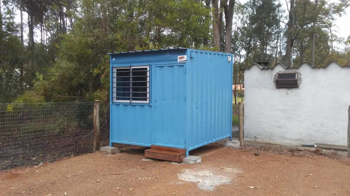 Galpón adicional 3×2 m en contenedor azul para almacenamiento.