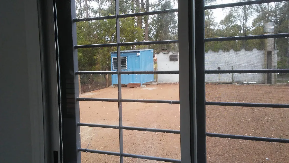 Vista desde el interior hacia el galpón contenedor 3×2 en el patio.