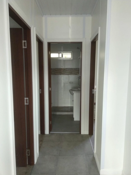 Pasillo distribuidor a 3 dormitorios y baño completo con revestimientos cerámicos.